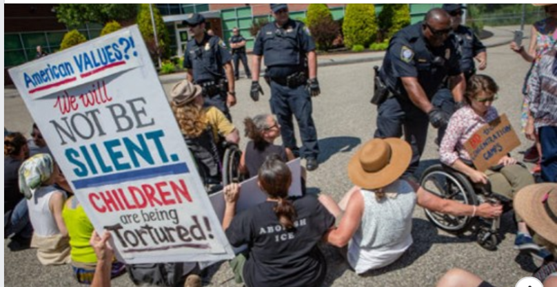 “What was accomplished?” a friend asked. I admit that I wondered about that too. How could I not? Since today was another hot day and I was recovering from a bit of heat stroke I got from yesterday, I reflected on that question. I have come to several conclusions. None of it was about us. None of it. And every person there yesterday knew that. It was about the kids. The kids who were taken away from their families. Kids who are still in these horrid places scattered around our country. It was for the kids who we have “lost” because we didn’t bother to maintain a data base on them. It’s about the kids who go to sleep night after night alone, away from their families and loved ones. It’s about the kids who have died because we didn’t care enough to take care of them. We risked arrest so that our voices could carry their silence to others to hear. Did they listen? We shall see. Will more join us next time? We shall see. If not now, when?